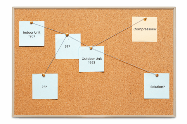 The indoor unit dated back to the 1960s, while the outdoor unit was replaced in the 1990s. Other contractors had assumed it was an unusual design with the compressors inside — and that the entire system needed to be rebuilt from the ground up.